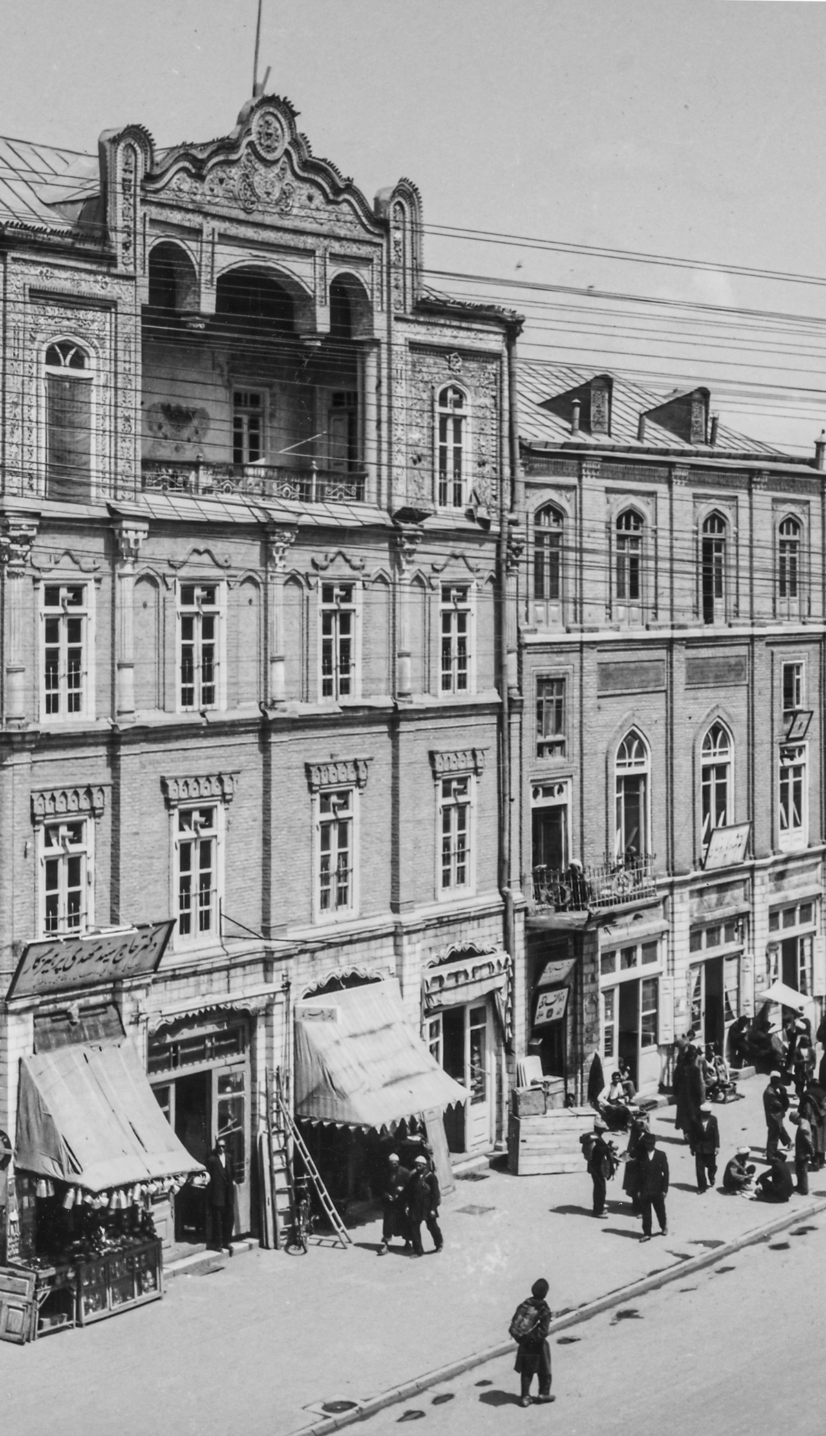 عنوان الصورة: منظر لمبنى مكون من چهارطبقه في الجانب الجنوبي من بست پایین خیابان (نواب صفوي) حرم الإمام الرضا (ع)