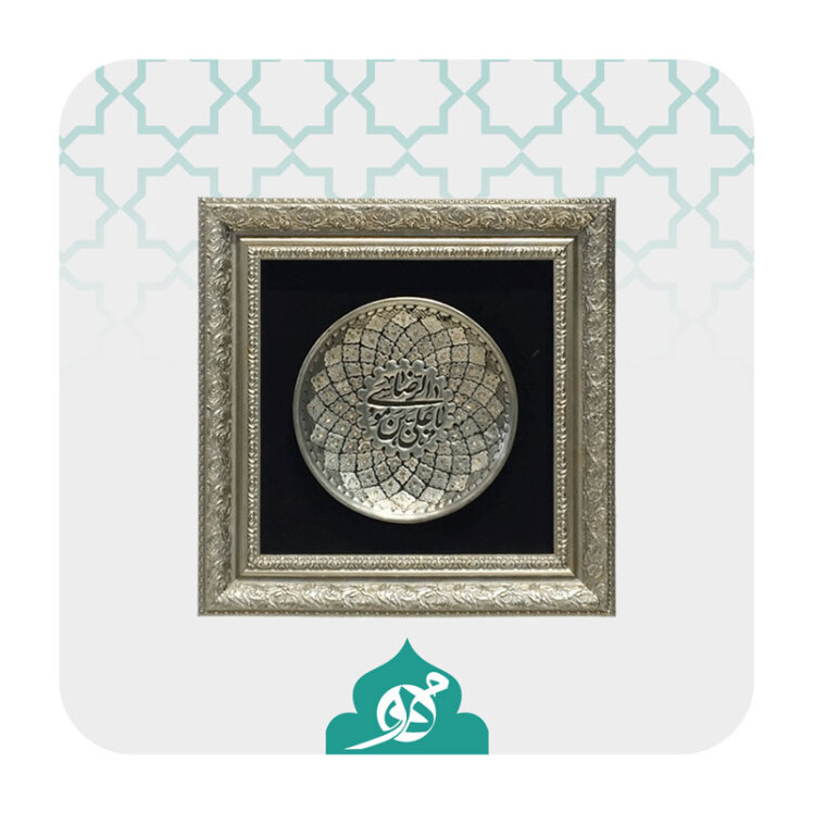 تابلوی قلمزنی شده به رنگ نقرهای که نام امام مهربانیها، علیابن موسیالرضا (علیهالسلام) در آن قلمزنی شده است، یک اثر هنری بسیار زیبا و با ارزش است که احساسی آرامشبخش را به محیط شما میبخشد.