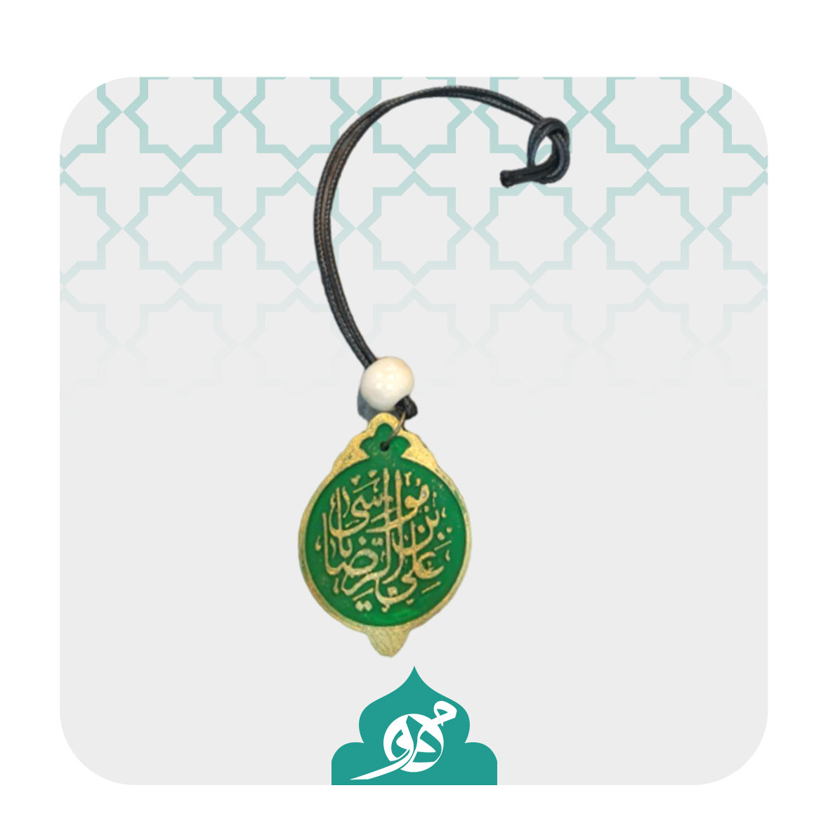 این آویز با طراحی منحصر به فرد در داخل آن عبارت «یا علی ابن موسی الرضا(ع)» به زیبایی درج شده است و استفاده از رنگ سبز جلوهای خاص و چشمنواز به آن بخشیده است.