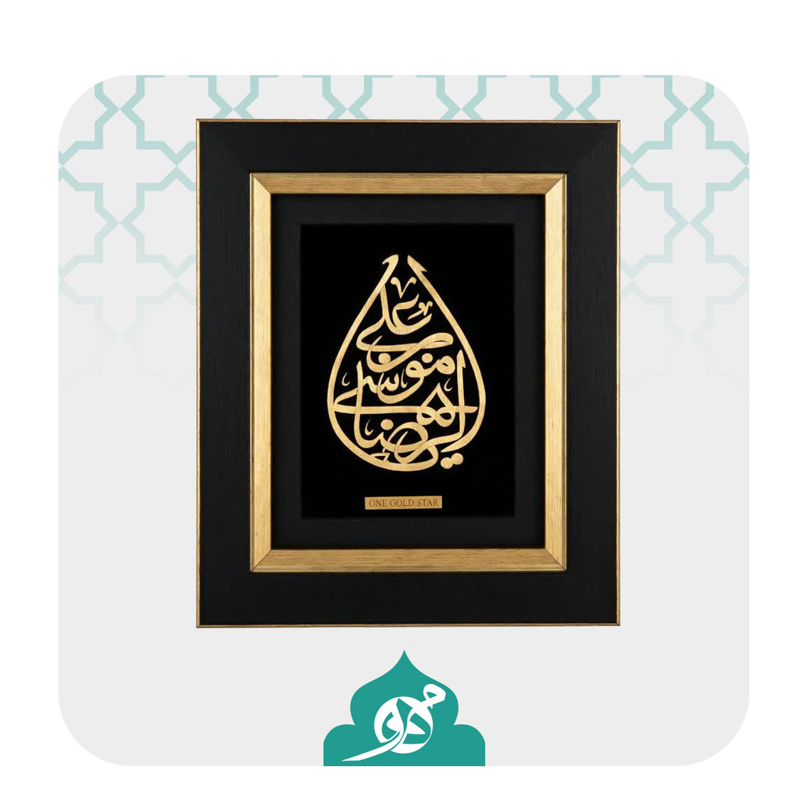 در این تابلوی زیبا و معنوی، نام نورانی "ایها موسی‌الرضا(ع)" به صورت مطلا و بر روی زمینه‌ای مشکی نقش بسته است تا یک اثر هنری چشم‌نواز را به وجود آورد و جلوه‌ای منحصربه‌فرد به محیط کاری یا زندگی شما ببخشد.